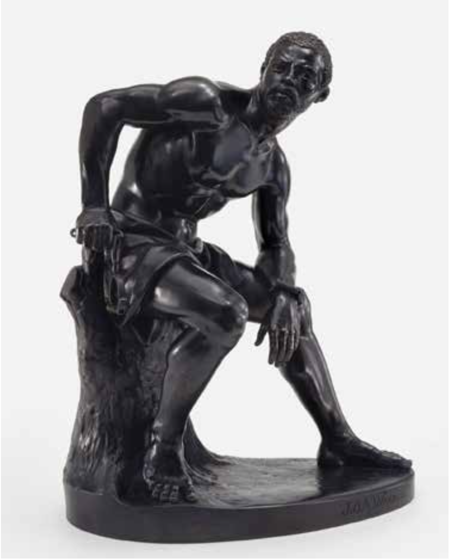 “The Freedman” depicts a figure with chains unbound — however the shackles remain dangling from his arm. The version of the sculpture at Williams College Art Museum is from the Carter collection, and has an accompanying key, which suggests the infinite potential of the evolution of liberation and the inevitable dissolving of these ephemeral bounds. Each ancestral generation has walked through a hazy miasma of uncertainty to arrive at this moment in history, where the continuation of emancipation is in focus, an apex just within reach, despite forces that unsuccessfully refuse and seek to stop the momentum forward.