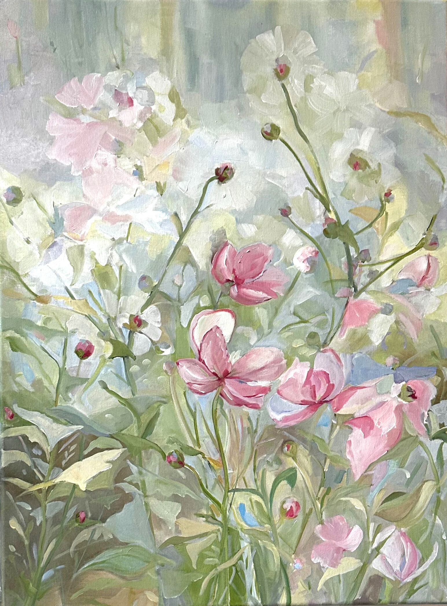 Sheldon and Weeks are studio mates — Sheldon spending lots of time painting “furiously” with her coffee, hot in the colder months and iced when it’s cold — a classic New England experience, and Weeks, a plein air painter, balancing her studio time with her time outdoors.